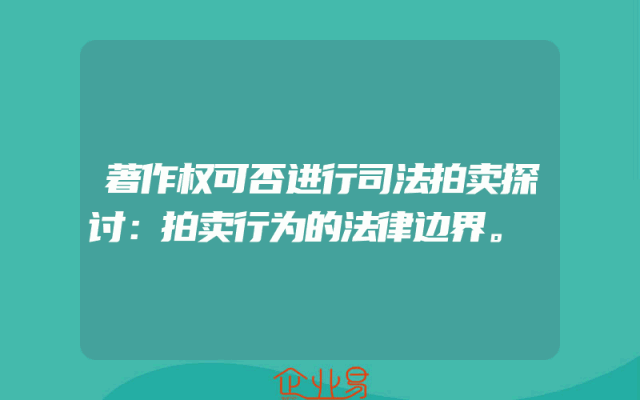- 著作权可否进行司法拍卖探讨:拍卖行为的法律边界。