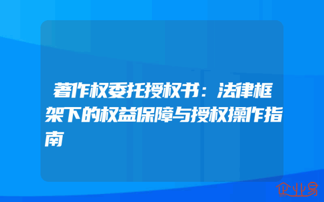 - 著作权委托授权书:法律框架下的权益保障与授权操作指南在现代社会,知识产权的保护日益受到重视,著作权作为知识产权的重要组成部分,其保护尤为重要。著作权委托授权书是著作权保护的关键环节之一,本文旨在探