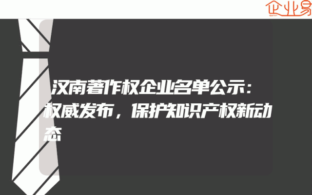 - 汉南著作权企业名单公示:权威发布,保护知识产权新动态