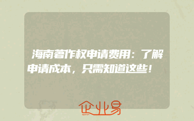 - 海南著作权申请费用:了解申请成本,只需知道这些!