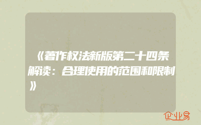 - 《著作权法新版第二十四条解读:合理使用的范围和限制》