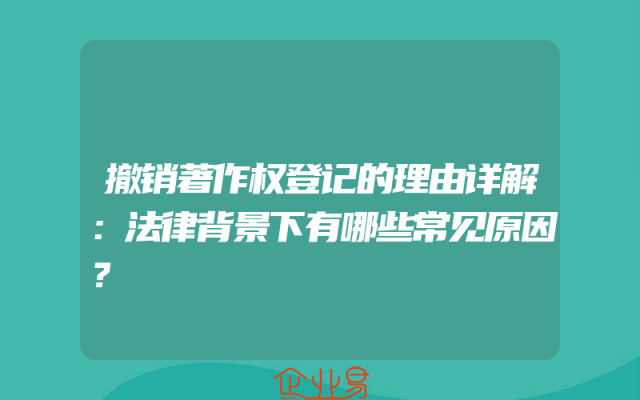 - 撤销著作权登记的理由详解:法律背景下有哪些常见原因?