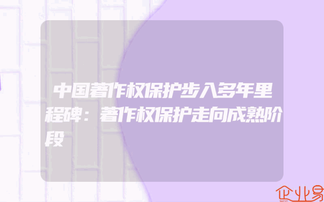 - 中国著作权保护步入多年里程碑:著作权保护走向成熟阶段