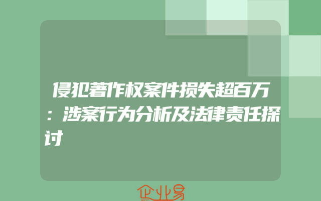 - 侵犯著作权案件损失超百万:涉案行为分析及法律责任探讨