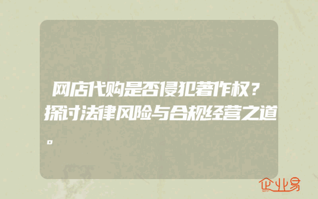 - 网店代购是否侵犯著作权?探讨法律风险与合规经营之道。