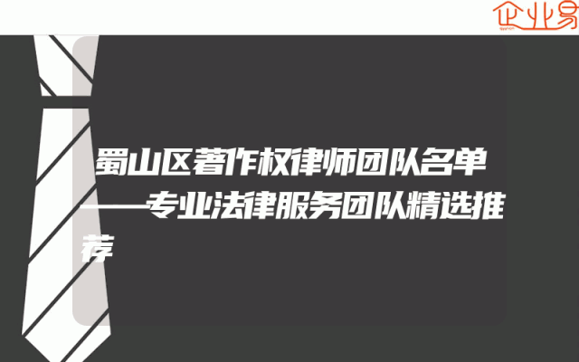 - 蜀山区著作权律师团队名单——专业法律服务团队精选推荐