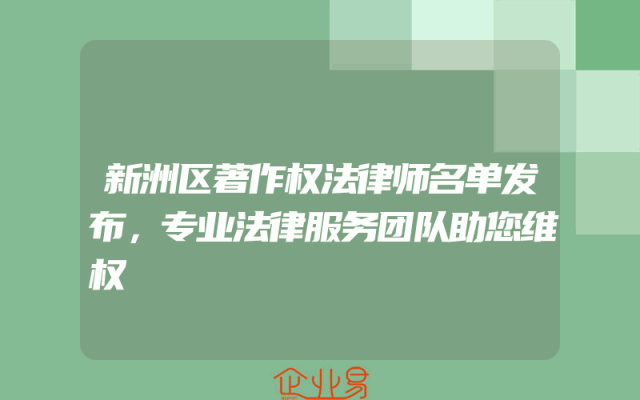 - 新洲区著作权法律师名单发布,专业法律服务团队助您维权