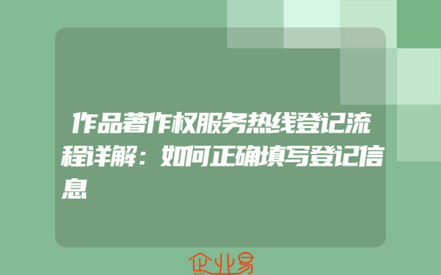 - 作品著作权服务热线登记流程详解:如何正确填写登记信息