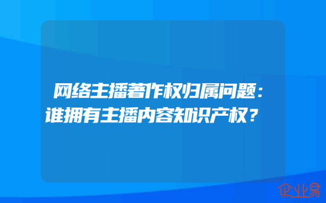 - 网络主播著作权归属问题:谁拥有主播内容知识产权?