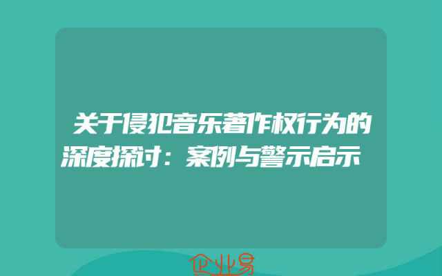 - 关于侵犯音乐著作权行为的深度探讨:案例与警示启示