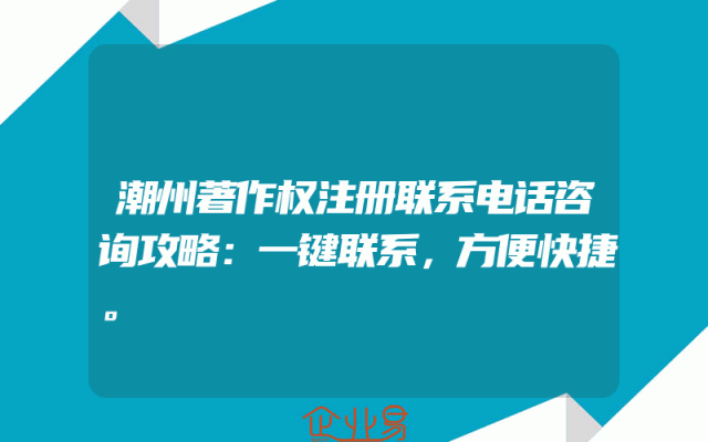 - 潮州著作权注册联系电话咨询攻略:一键联系,方便快捷。