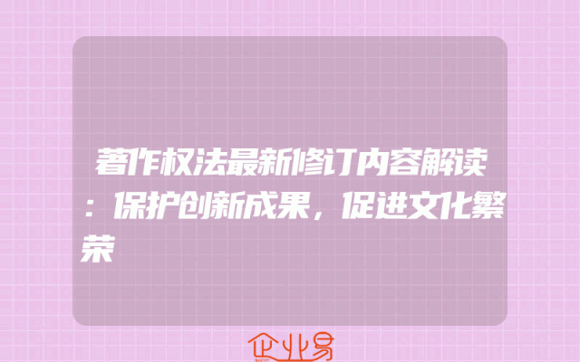 - 著作权法最新修订内容解读:保护创新成果,促进文化繁荣