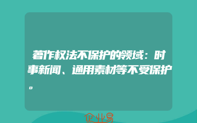 - 著作权法不保护的领域:时事新闻、通用素材等不受保护。
