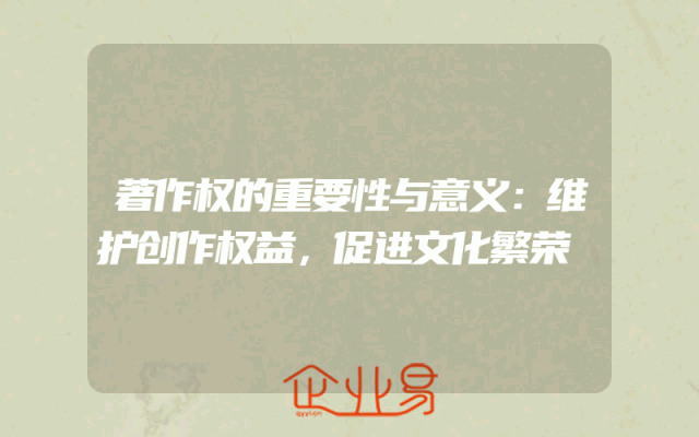 - 著作权的重要性与意义解析:维护创作权益,促进文化繁荣一、著作权的核心价值与创作权益的保障在当今社会,知识产权的保护日益受到重视,其中著作权作为知识产权的重要组成部分,更是扮演着至关重要的角色。著作权的核心价值在于保障创作者的权益,激发创作热