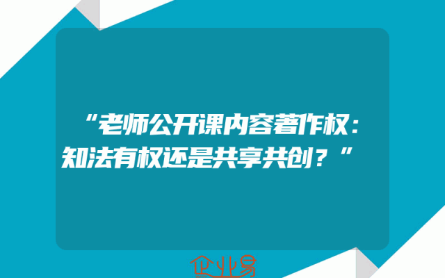 - “老师公开课内容著作权:知法有权还是共享共创?”