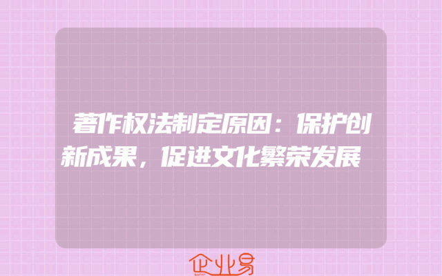 - 著作权法制定原因:保护创新成果,促进文化繁荣发展