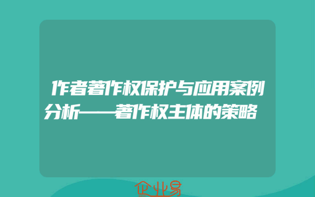 - 作者著作权保护与应用案例分析——著作权主体的策略
