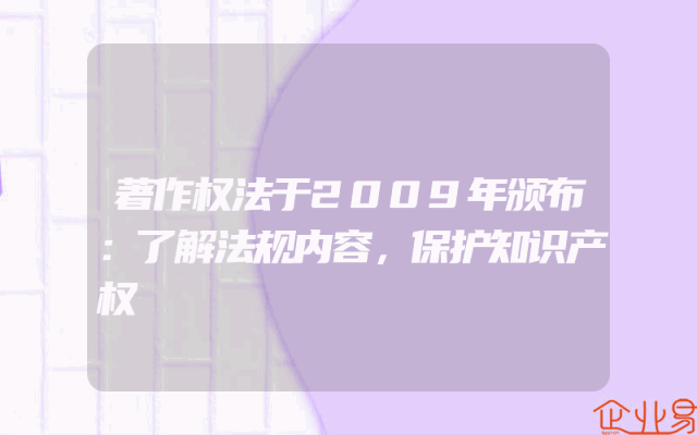 - 著作权法于2009年颁布:了解法规内容,保护知识产权