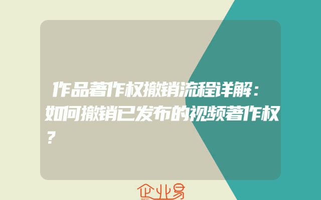 - 作品著作权撤销流程详解:如何撤销已发布的视频著作权?