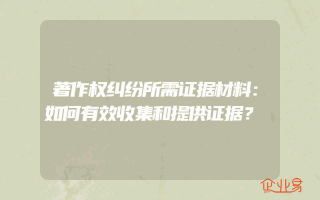 - 著作权纠纷所需证据材料:如何有效收集和提供证据?