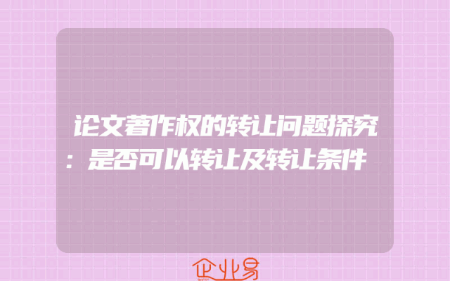 - 论文著作权的转让问题探究:是否可以转让及转让条件