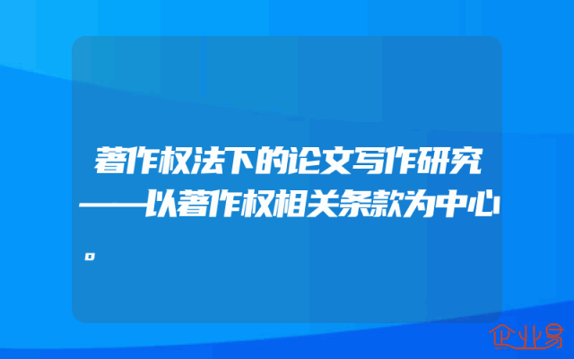 - 著作权法下的论文写作研究——以著作权相关条款为中心。