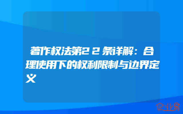 - 著作权法第22条详解:合理使用下的权利限制与边界定义