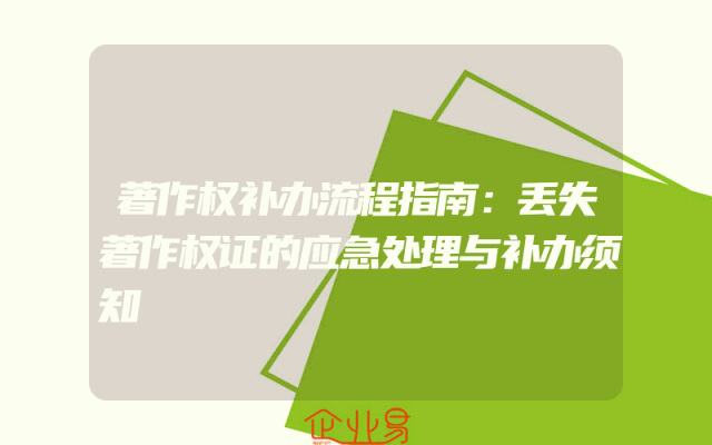 - 著作权补办流程指南:丢失著作权证的应急处理与补办须知