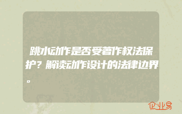 - 跳水动作是否受著作权法保护?解读动作设计的法律边界。
