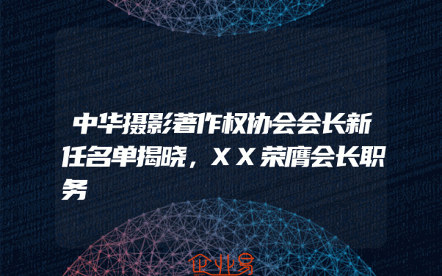 - 中华摄影著作权协会会长新任名单揭晓,XX荣膺会长职务