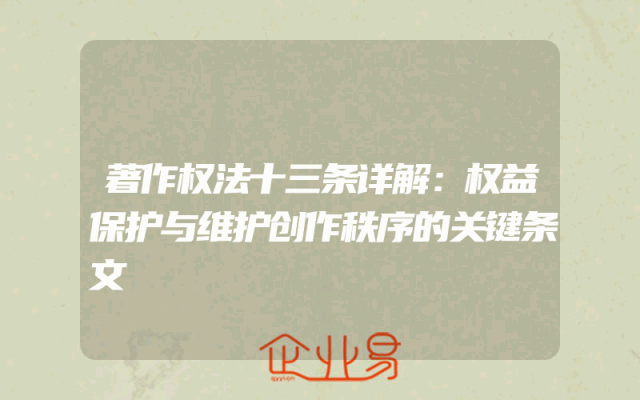 - 著作权法十三条详解:权益保护与维护创作秩序的关键条文