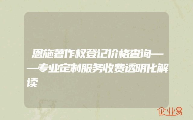 - 恩施著作权登记价格查询——专业定制服务收费透明化解读
