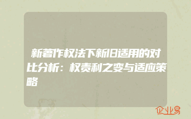 - 新著作权法下新旧适用的对比分析:权责利之变与适应策略