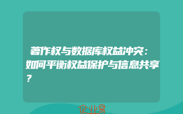 - 著作权与数据库权益冲突:如何平衡权益保护与信息共享?