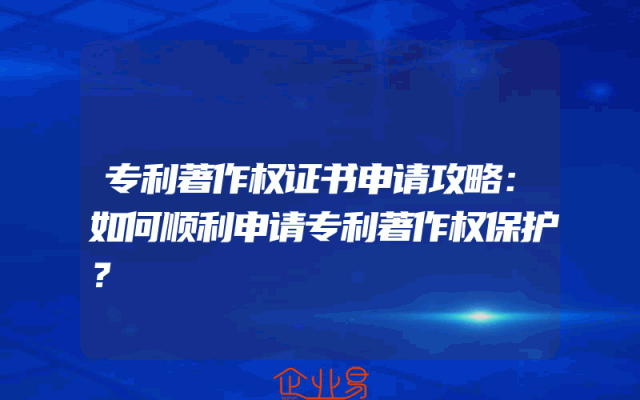 - 专利著作权证书申请攻略:如何顺利申请专利著作权保护?