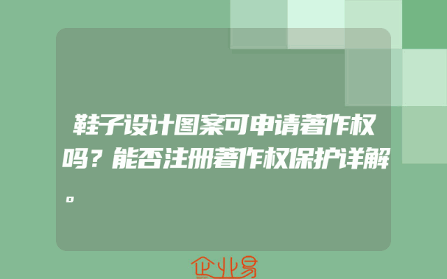 - 鞋子设计图案可申请著作权吗?能否注册著作权保护详解。