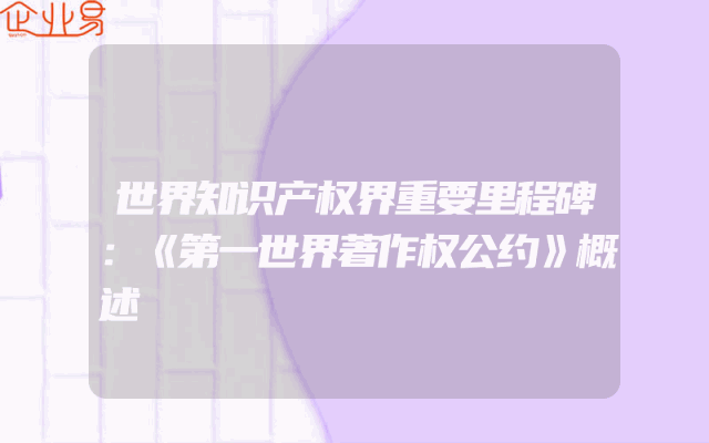 - 世界知识产权界重要里程碑:《第一世界著作权公约》概述