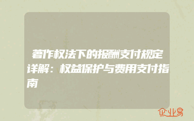 - 著作权法下的报酬支付规定详解:权益保护与费用支付指南