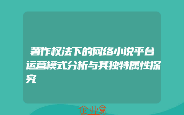 - 著作权法下的网络小说平台运营模式分析与其独特属性探究