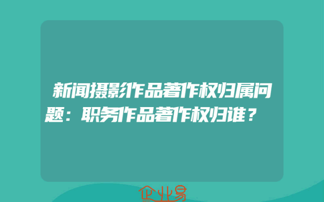 - 新闻摄影作品著作权归属问题:职务作品著作权归谁?