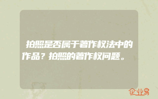 - 拍照是否属于著作权法中的作品?拍照的著作权问题。