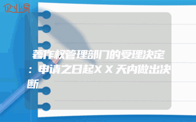 - 著作权管理部门的受理决定:申请之日起XX天内做出决断