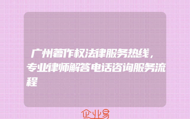 - 广州著作权法律服务热线,专业律师解答电话咨询服务流程