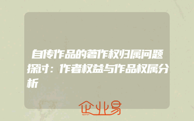 - 自传作品的著作权归属问题探讨:作者权益与作品权属分析