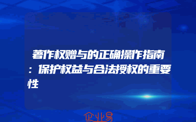 - 著作权赠与的正确操作指南:保护权益与合法授权的重要性