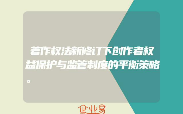 - 著作权法新修订下创作者权益保护与监管制度的平衡策略。