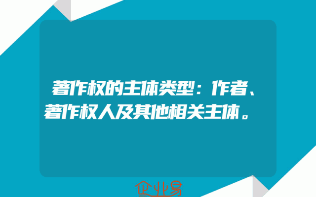 - 著作权的主体类型:作者、著作权人及其他相关主体。