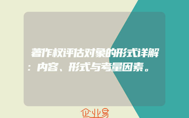 - 著作权评估对象的形式详解:内容、形式与考量因素。