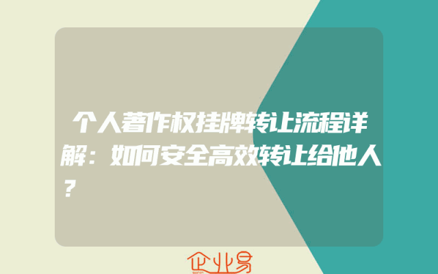 - 个人著作权挂牌转让流程详解:如何安全高效转让给他人?