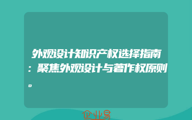 - 外观设计知识产权选择指南:聚焦外观设计与著作权原则。